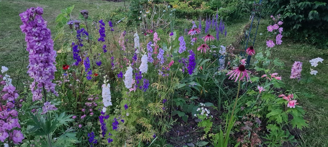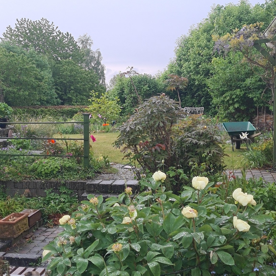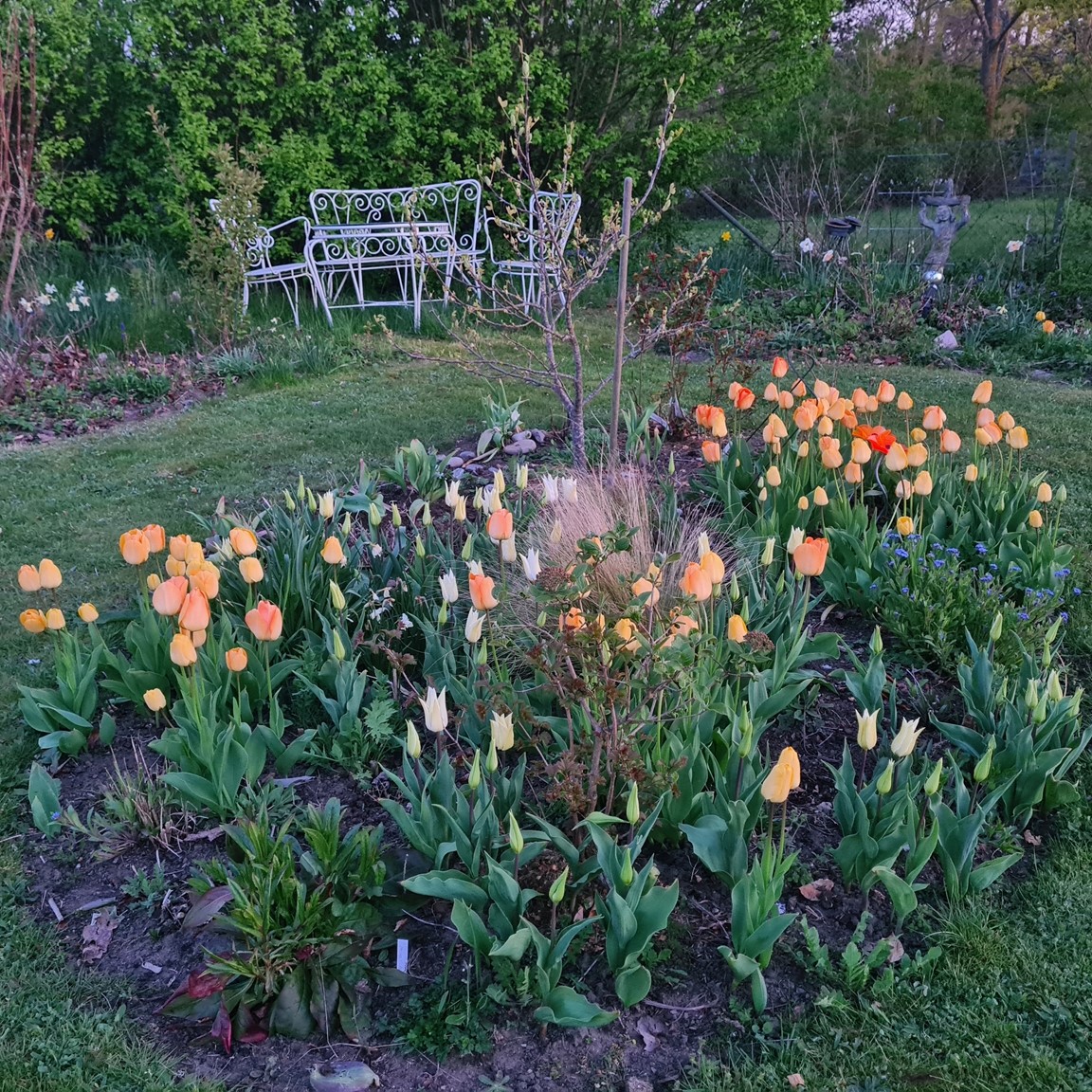 Vår trädgård är nästan 3000 kvm och består av etager. Ursprungligen ritad av trädgårdsarkitekt Tommy Nordström på 1990-talet, inspirerad av de italienska trädgårdarna. Trädgården är omringad av bokhäckar och strukturen i trädgården kretsar kring ett antal rundlar också de av bok. Vår trädgård ligger på Lilla Viks golfbana men också mittemellan de typiska äppelodlingarna på Österlen. Större delen av trädgården är på ren sandjord och vi har försökt att anpassa planteringarna efter det. Den övre delen av trädgården innehåller blomsterlök och perennplanteringar med rosor, pioner och magnolior. Den nedre delen låter vi vara delvis vild. I delar av trädgården odlar jag italienska ranunkler och anemoner och beroende på väder kan det, den 28 juni finnas självplock av dem. Delvis bor vi i Italien, så trädgården är i dag anpassad så att det går att lämna en månad då och då. Jag älskar att se de första ”riktiga” blommorna slå ut på våren lika mycket som jag fascineras av att lyckas knäcka koderna för att lyckas med sommarblommande lökar. Detta präglar min trädgård i dag. Jag gillar både att samla egna frön och framförallt att ta sticklingar. Försäljning av växter.