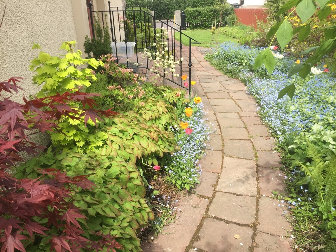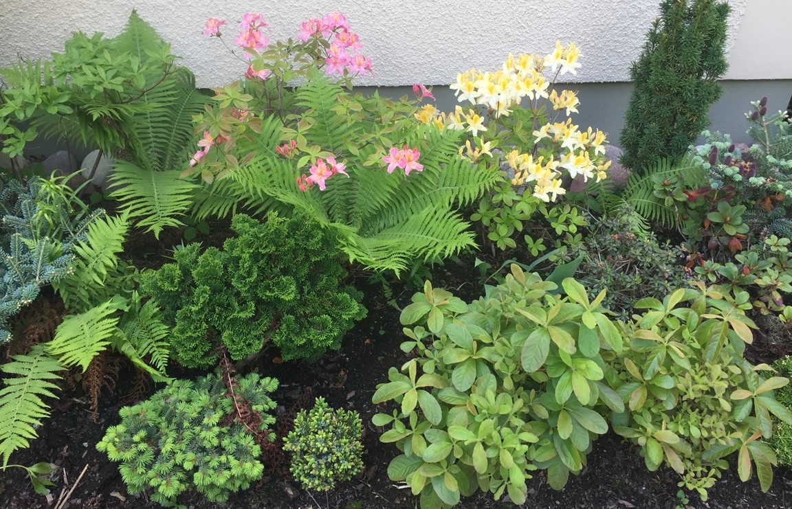 Trädgården på Linnévägen 4 fick Stefan chansen att ta sig an när en större uteplats efterfrågades. Det tog han som grönt ljus att göra om hela trädgården med stensättning i älvdalssten, trappor genom höjdskillnader i rabatt, pergola, insprängda planteringar samt flera upphöjda växtbäddar. Här finns även ett arboretum av lite vildare karaktär med intressanta buskar och träd. Vad sägs om dvärgvalnötsträd, mandelträd, persika, katalpa, tulpanträd, paw paw, perukbuske, grå skenkamelia, azaleor, getapel, kvitten eller stor häxal?