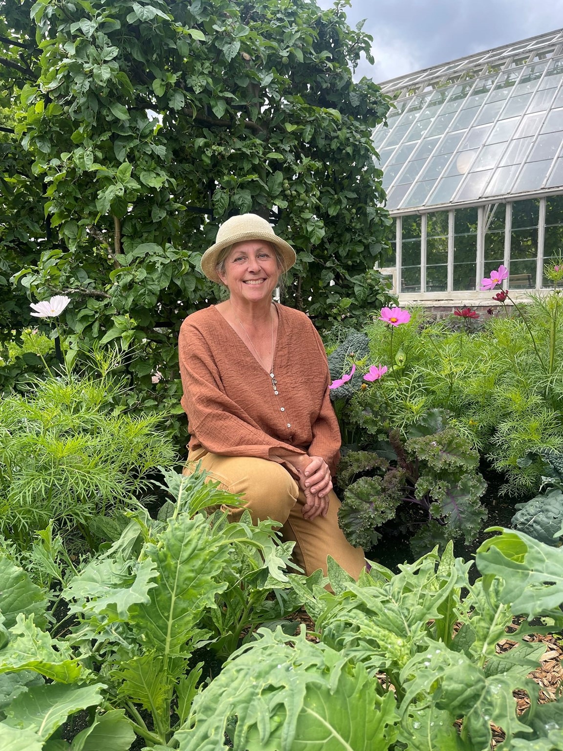 Hon har under många år odlat sina potager, en dekorativ köksträdgård, på gården i Skåne, zon 2.