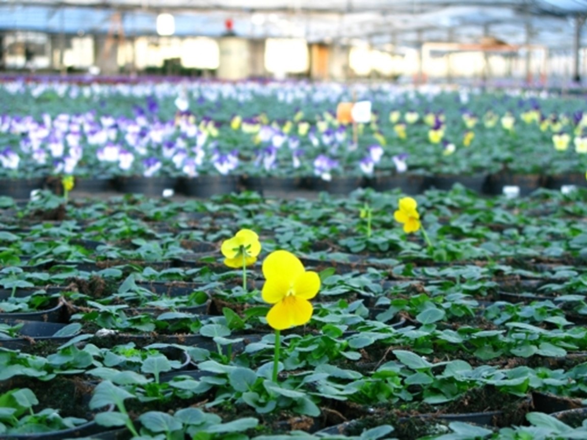 Vi får en guidning runt odlingarna men också tillfälle att köpa vår och sommarblommor. De har ett stort utbud av penseér och pelargoner.