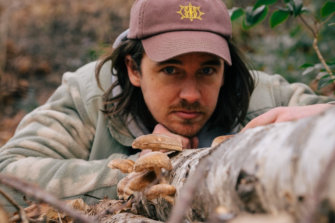 Emil har med sig mycel och tillbehör för att odla svamp till försäljning.