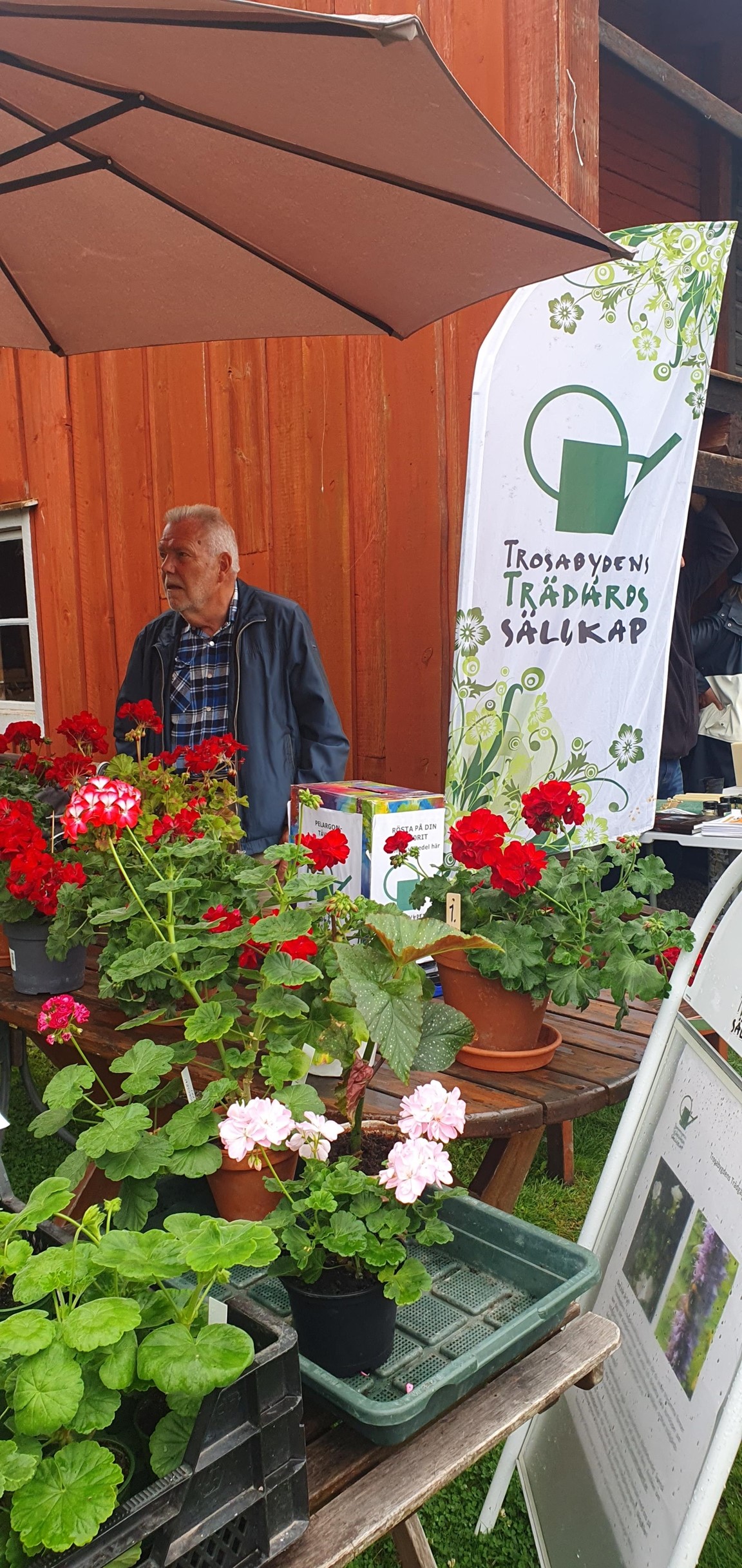 Skördemarknad på Garvaregården i Trosa med många försäljare av lokalt odlat och tillverkat. Trädgårdssällskapet har sin årliga pelargontävling. Pelargonen vi tävlar med i år heter Moonlight Guido. Vinnare av pelargontävlingen utses av publiken - fina priser till vinnarna.