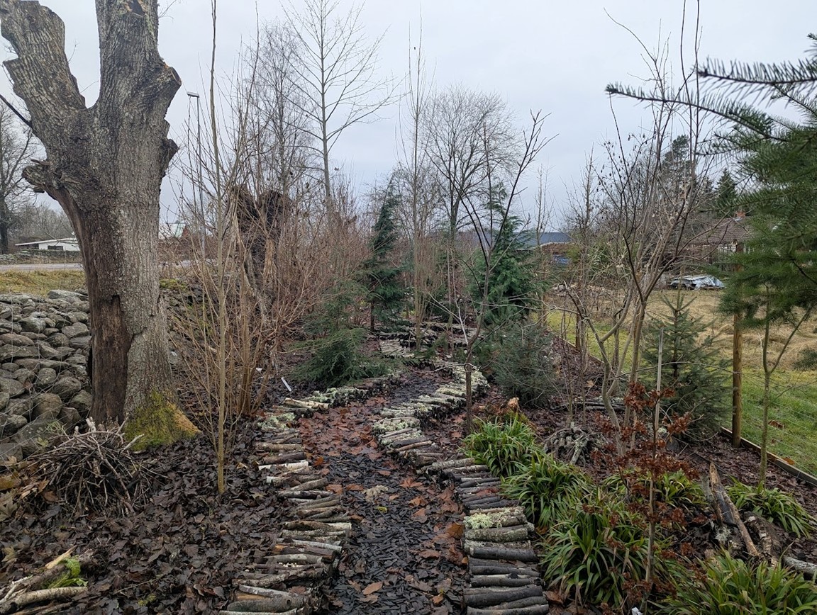 Trädgård på 4000 kvadratmeter som började anläggas 2018. Det finns woodland, växthus, damm, stenparti och olika sektioner där fokus är träd och väx