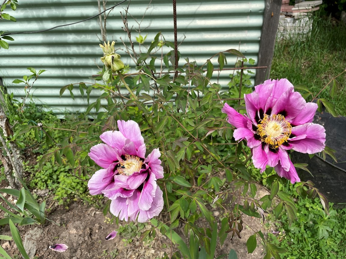 Det finns många vintergröna växter, tallar och granar i trädgården. Massor av olika buskar, pioneer, flox och liljor. Mina toppfavoriter är IRISAR –