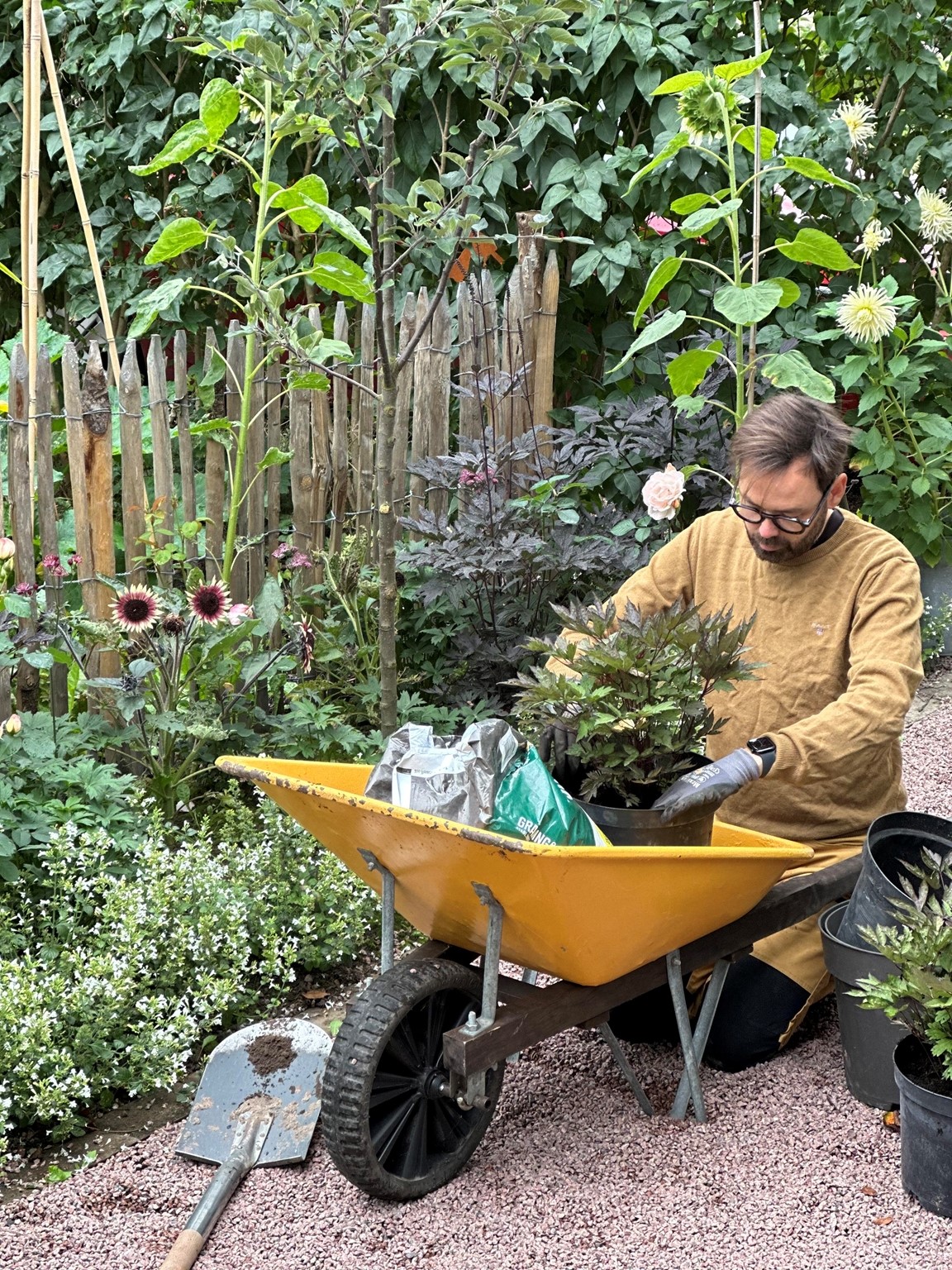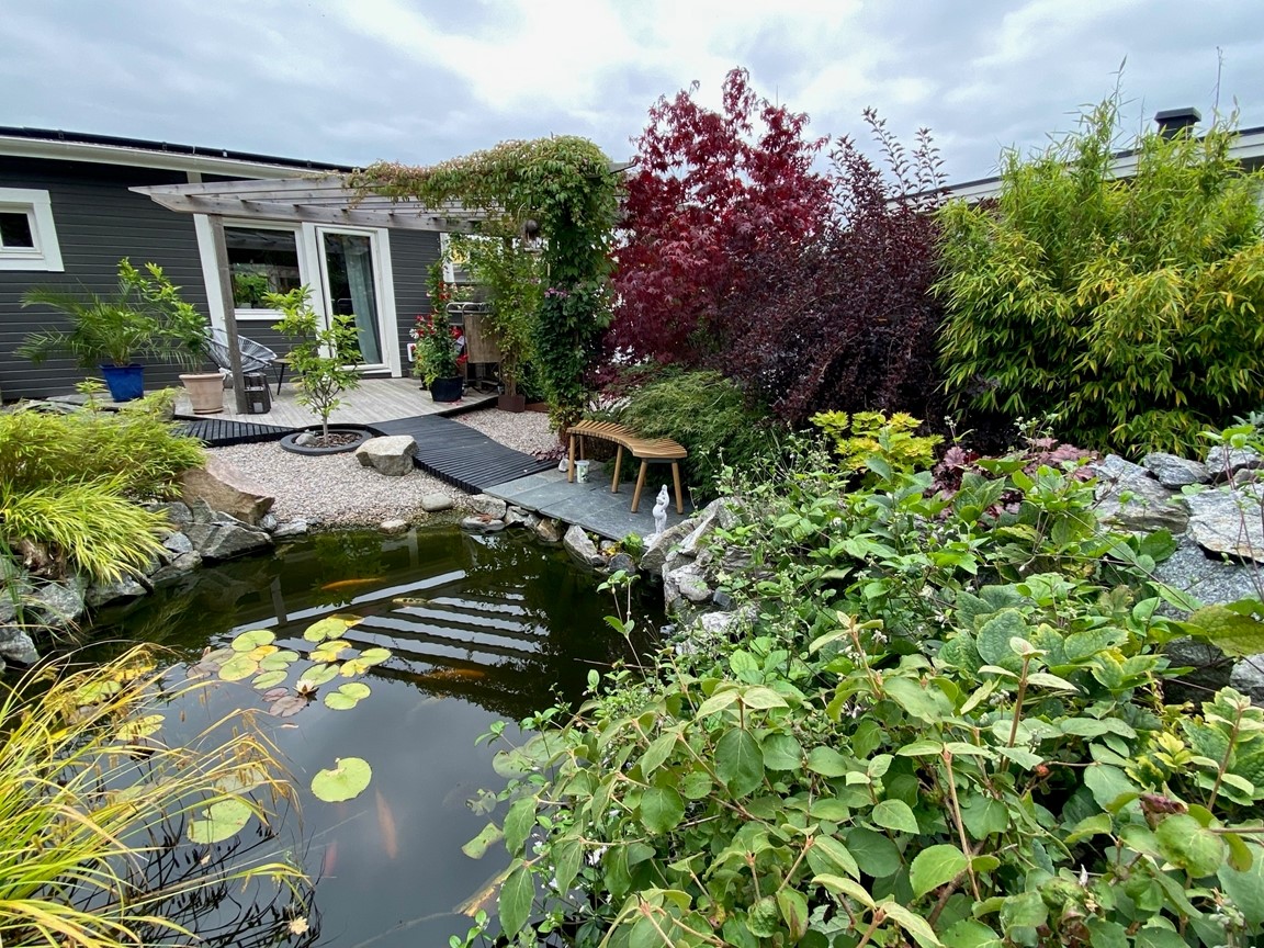 Vi startade med en platt trädgård som bestod av gräsmatta och några enstaka buskar. 2012 tog vi det första spadtaget och började jobba med nivåskillnader och olika rum med många sittplatse