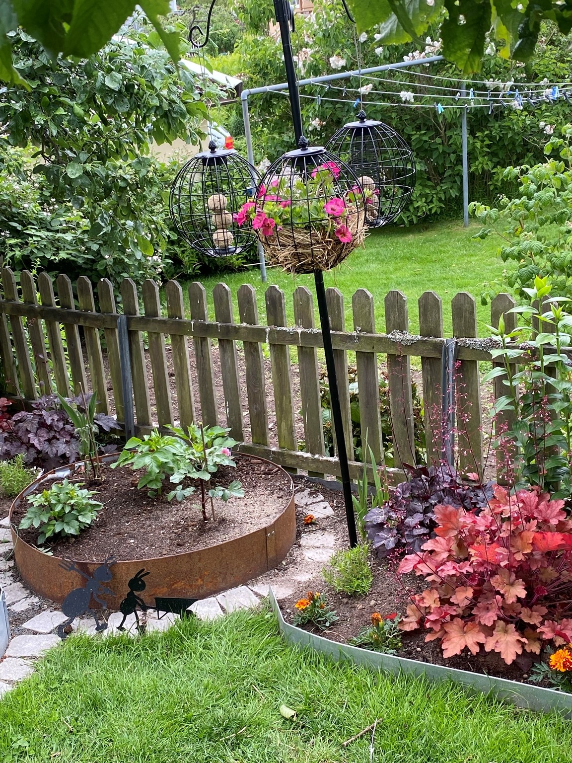 En trädgård i ständig förändring, från pioner till rosor och funkior och massa irisar....En stor fantastisk blodbok som ger skugga, att stå under och titta upp ger en härlig känsla. När vi kom hit s