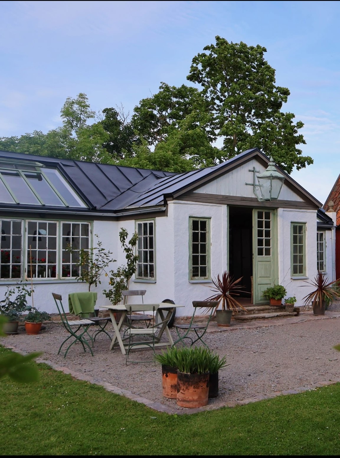 Vi startade med en bit åkermark, hit flyttade vi ett hus i skiftesverk som vi renoverat och byggt till, allt är skapat från grunden under 35 år. Återbruk är viktigt