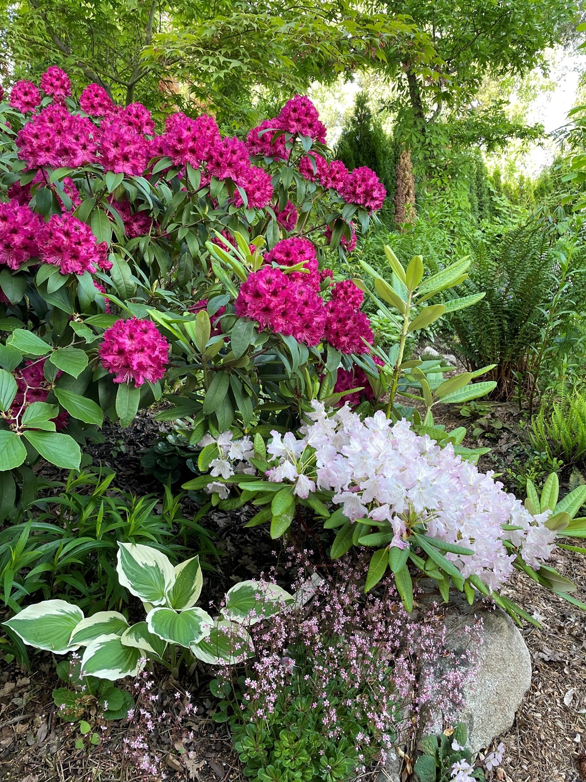 Uppbyggnaden av vår trädgård började i mitten av 1980-talet. Vi experimenterar med olika odlingsmetoder som våtbäddar, upphöjda torvbäddar och odling i ren
