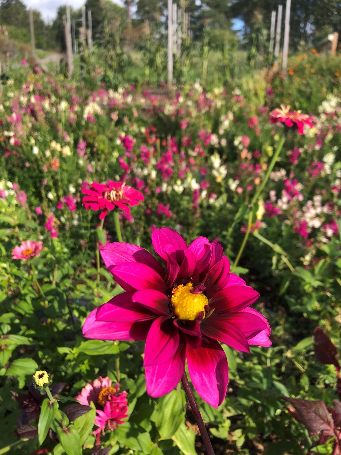 Trädgården där jag odlar grönsaker och blommor ligger idyllisk vid den vackra Elfviks gård längst ut på Lidingö. Alla möjliga blommor finns för sj