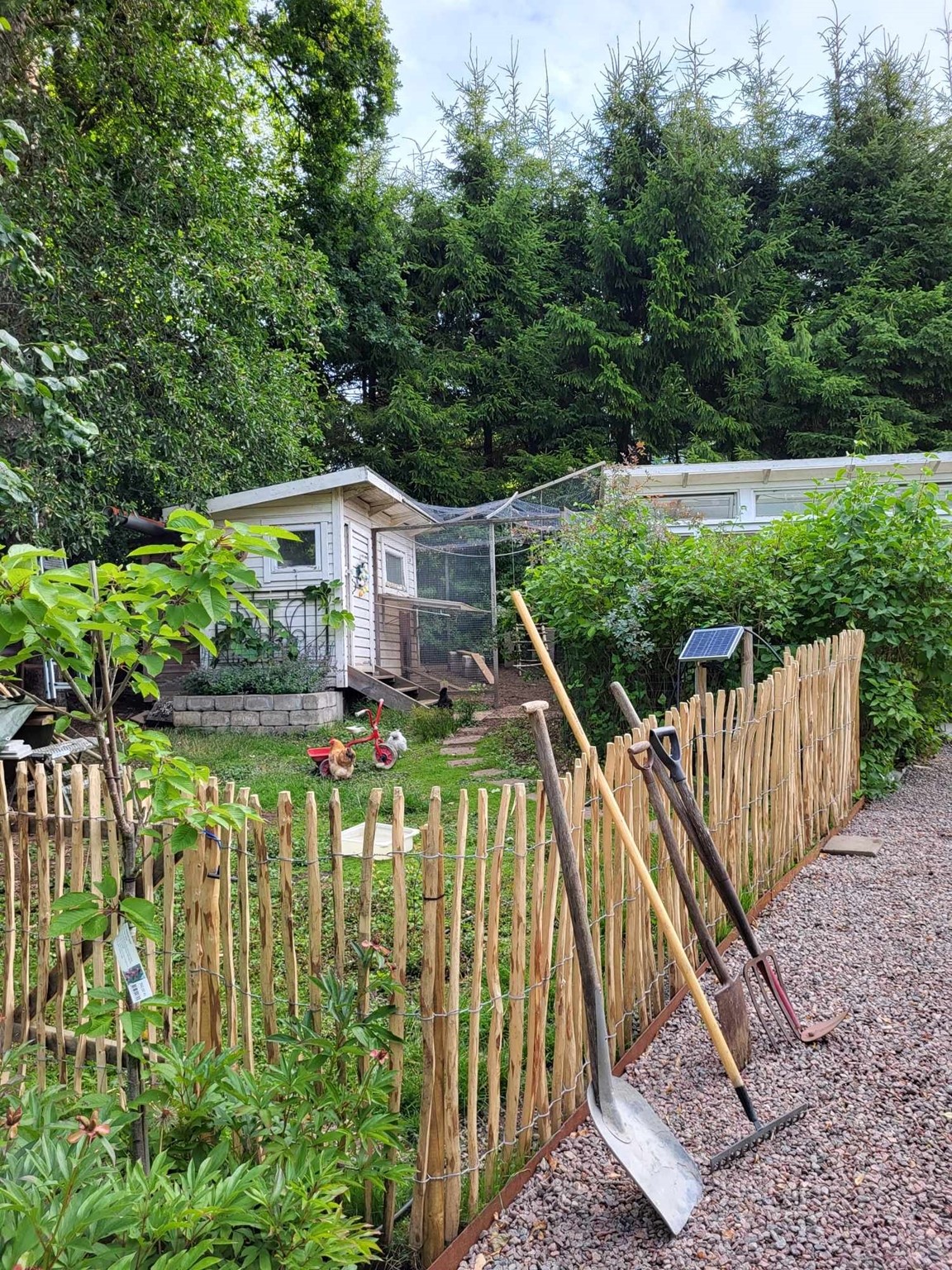 - [ ] Trädgård Okonventionell trädgård på 1300kvm. Barrväxter, rhododendron och perenner. Surjordsrabatter på bergsluttningen. Frukt o prydnadsträd. Ä