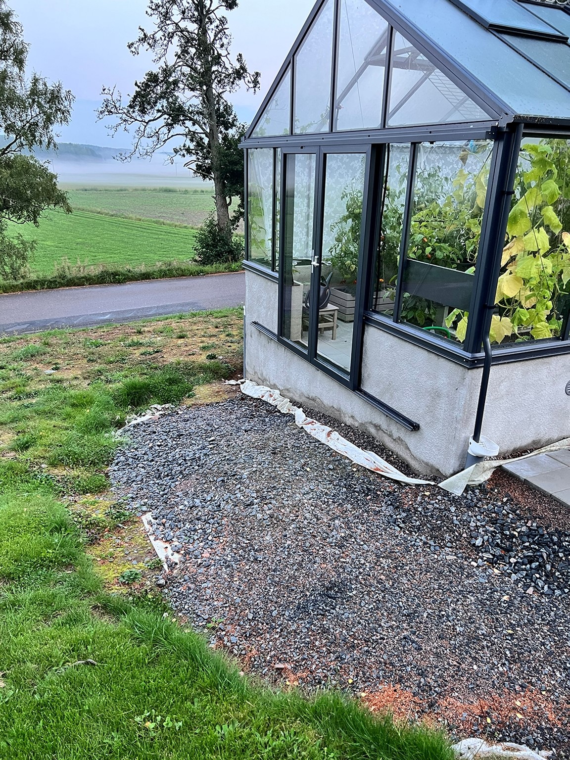 Villaträdgård på 700kvm under uppbyggnad. Våren 2022 startade vi trädgårdsanläggandet med att ta bort stora delar av gräsmattan och börja med stukture