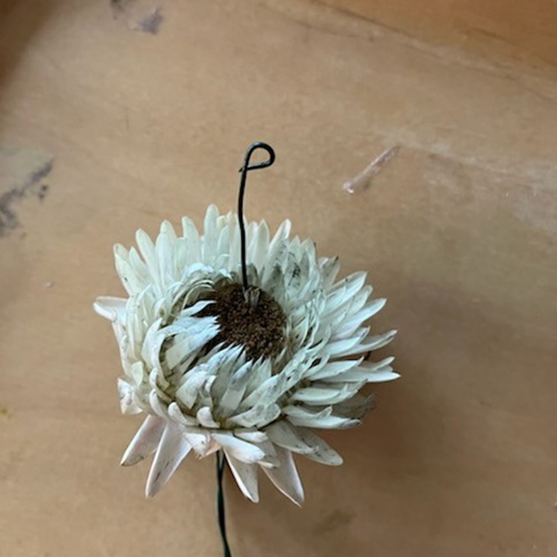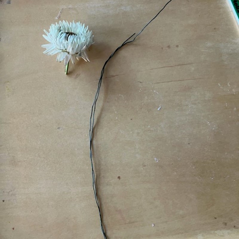 - Stick in den översta delen av ståltråden underifrån genom blomman.