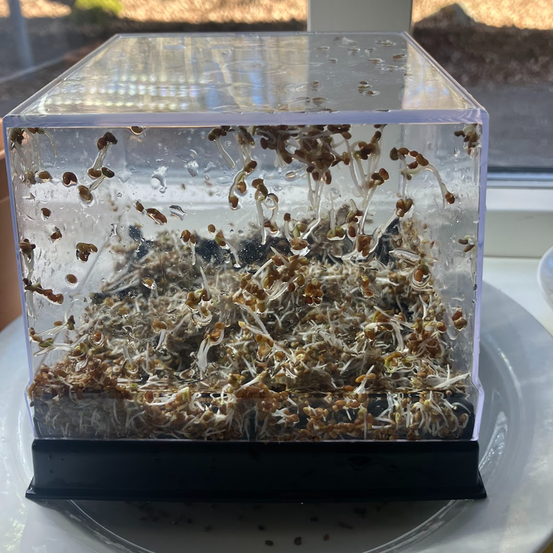 Om man vill ha ett snabbt resultat så är det kul och intressant att grodda olika frösorter. Det finns många att välja mellan och den här gången valde vi Alfalfa-groddar. De blir klara snabbt och är goda och krispiga att ha i sallad, på smörgås eller helt enkelt bara äta direkt.