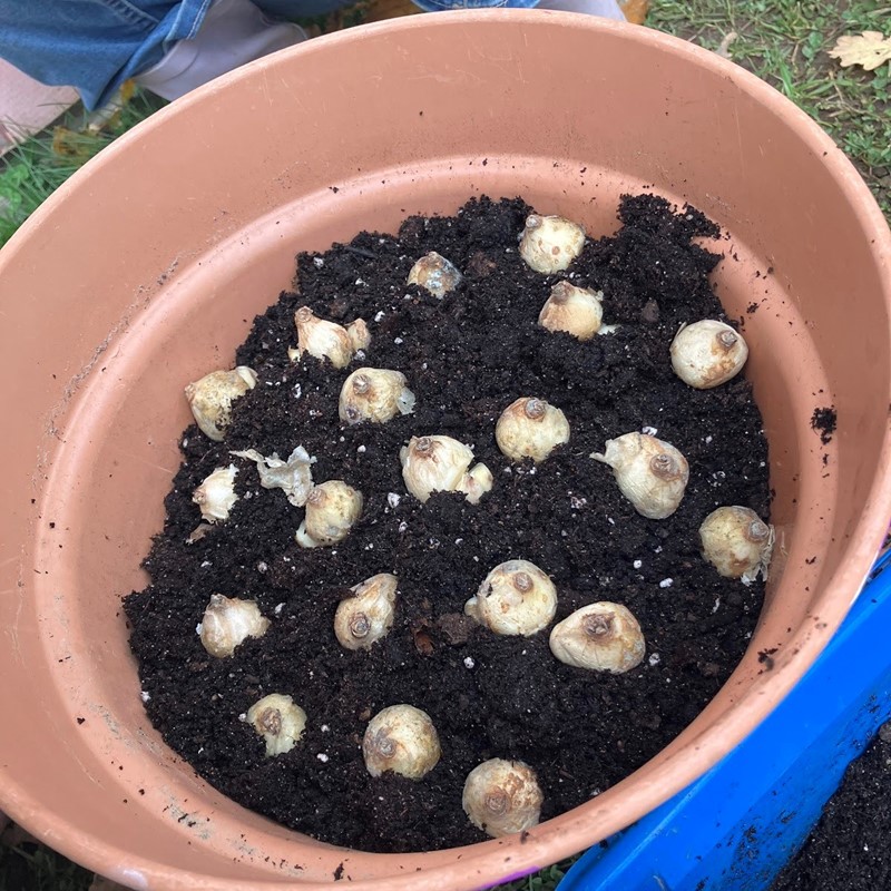 - Lägg på ett sista jordlager och vattna lätt. Var sparsam med vattnet. För mycket vatten kan leda till att lökarna ruttnar.
