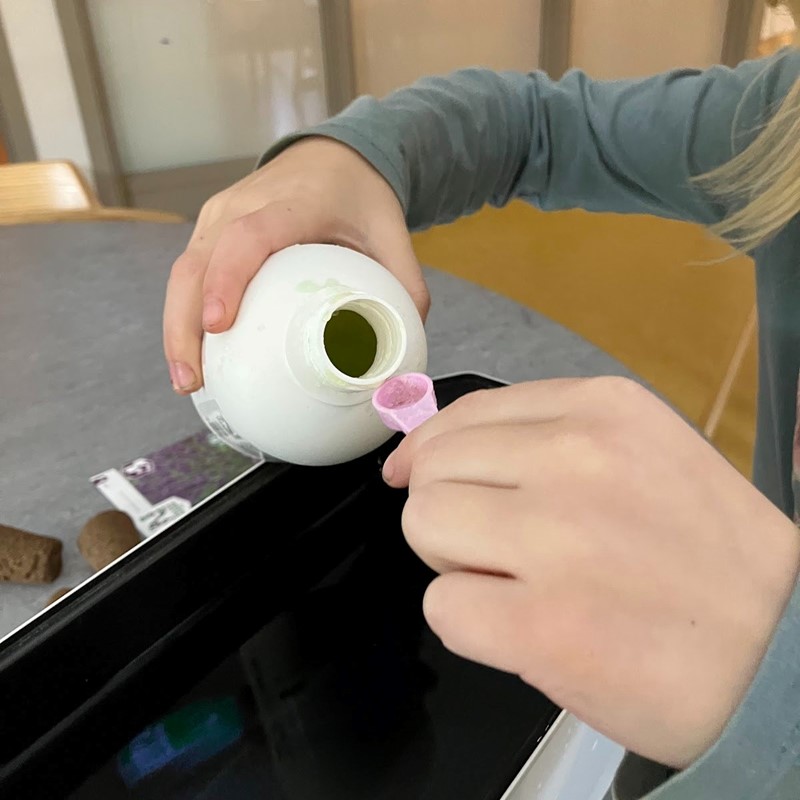 - Därefter fyller du på vatten och näringslösning när nivån i behållaren visar att det är dags. Det finns tydliga instruktioner på flaskan med näringslösning. Det finns även en tydlig nivåmarkering inne i Harveylådan som visar när det är dags att fylla på. Det handlar om att fylla på vatten kanske varannan vecka.
