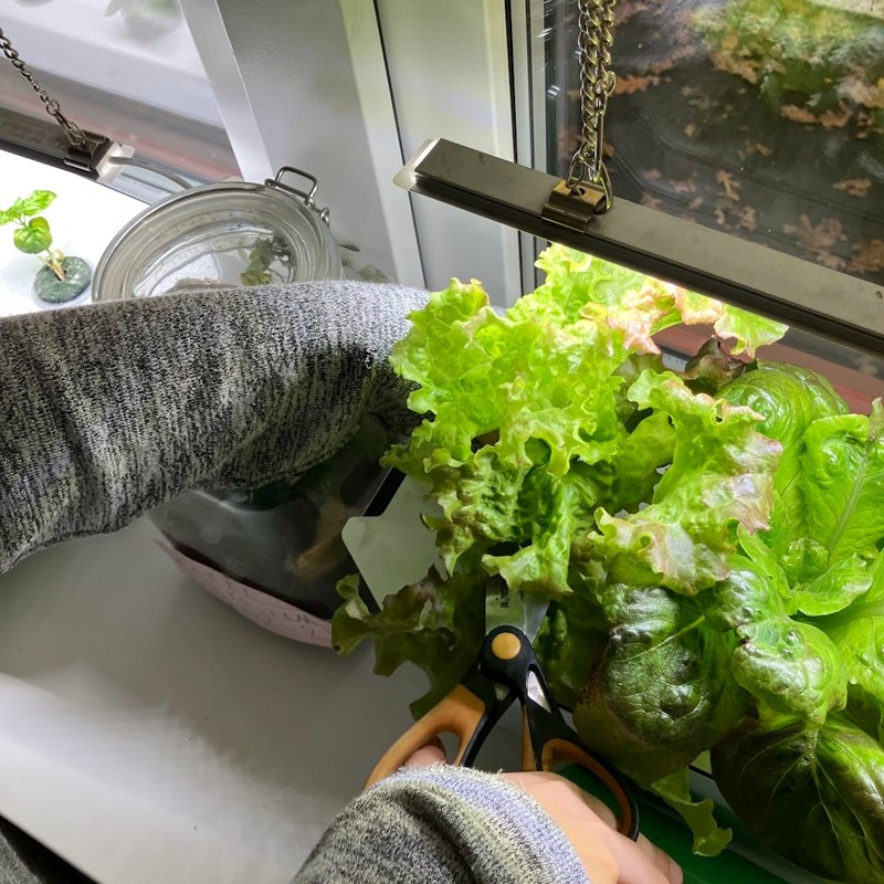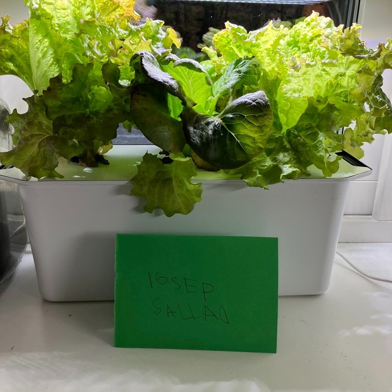 Vi satte vår frö den 16 september och bara några dagar senare kunde vi se salladsblad titta upp.