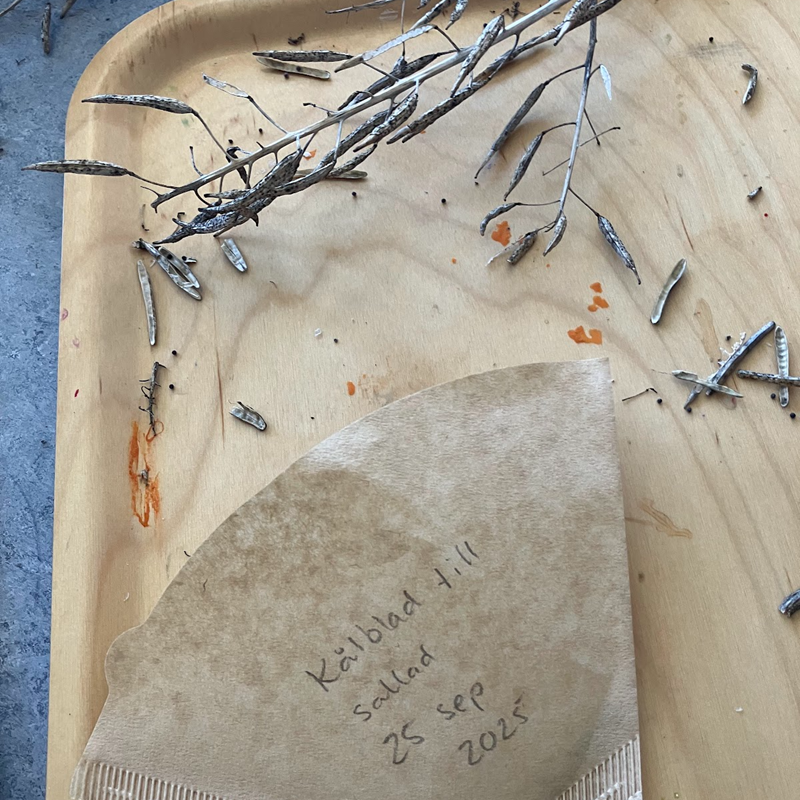I år har vi valt att samla fröer från eterneller, ringblommor och olika grönsaker och örter. Vissa av grönsaksfröerna kan vi odla som mikrogrönt under vinterhalvåret. De andra fröerna sparar vi till vårkanten. För visst går det fort. Det är ju redan dags att planera för nästa års odlingar.